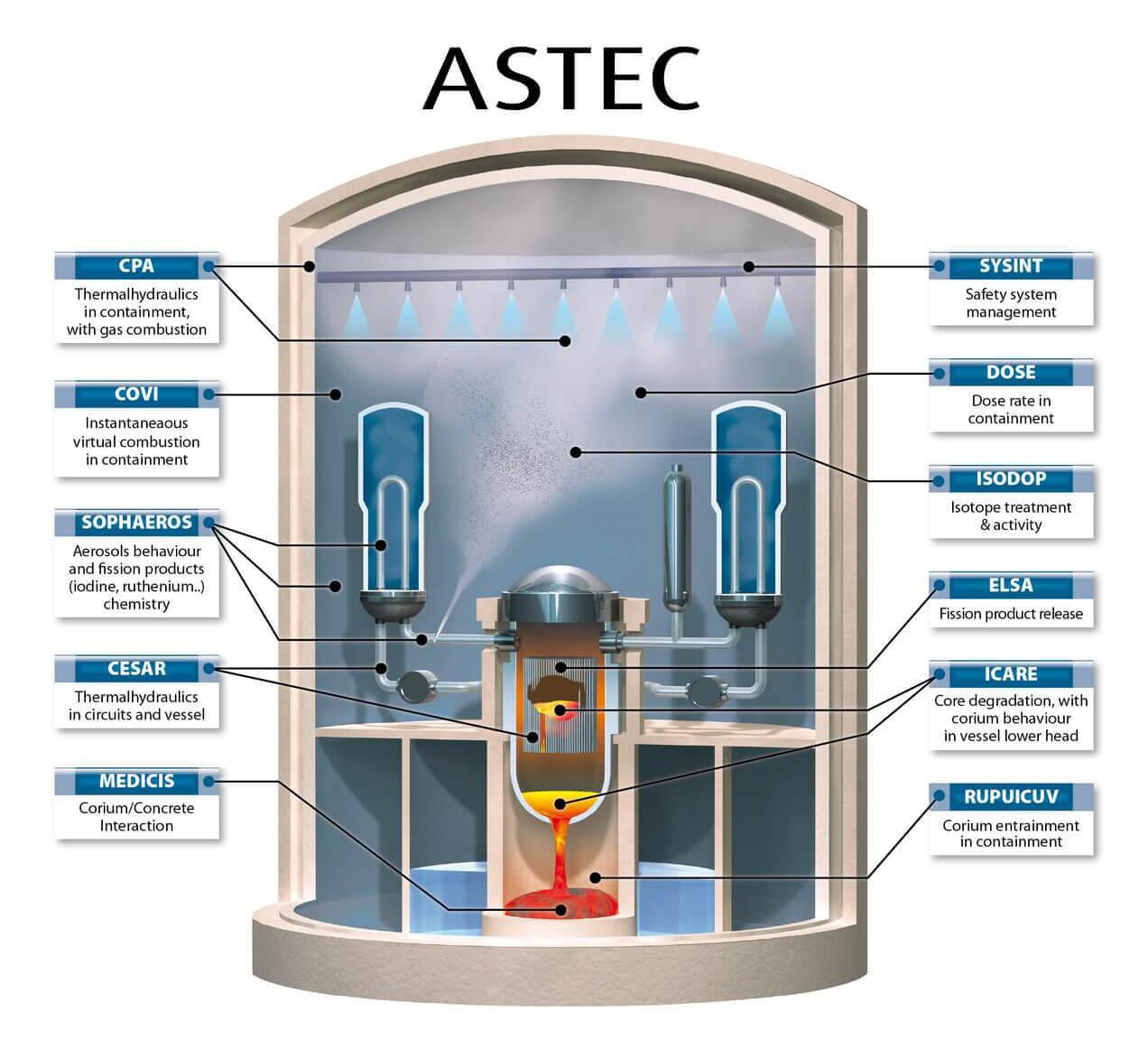The ASTEC software (Accident Source Term Evaluation Code) allows for the assessment of the consequences of a nuclear accident by modeling the release of radioactive materials into the environment. Participants learn how to install, configure, and interpret the results of this software for various accident scenarios.